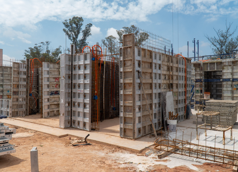 Outro destaque é a substituição da madeira por fôrmas metálicas reutilizáveis, que proporcionam mais precisão na execução, melhor acabamento e reduzem os impactos ambientais.